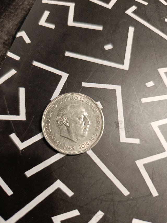 Una moneda de 5 pesetas de 1949, conocida popularmente como "duro".