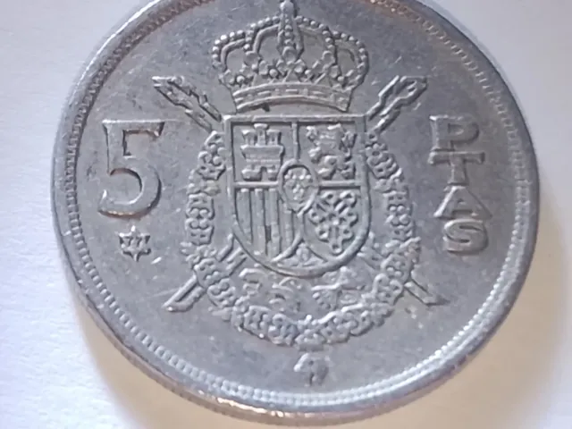 Moneda de 5 pesetas del año 1975. Presenta una estrella con el número 77. - Ceca: Estrella 77 - Año: 1975 - Denominación: 5 Pesetas