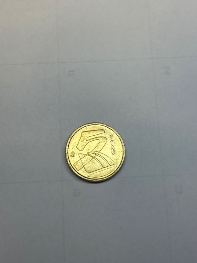 Moneda de 5 pesetas del año 1990. - Diseño con el número 5. - Grabado de un barco. - Acuñación en metal.