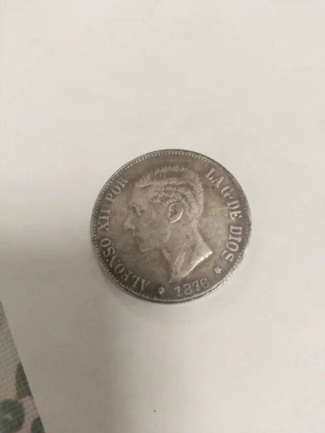 Moneda de 5 pesetas con la efigie de Alfonso XII. - Año: 1876 - Leyenda: POR LA G. DE DIOS - 37 mm diametro