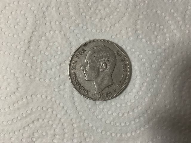 Detalles del productoMoneda de 5 pesetas del año 1885, con el busto de Alfonso XII.