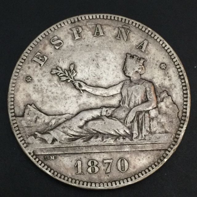 Detalles del productoPreciosa moneda de 5 pesetas española, acuñada en 1870. Se encuentra en buen estado de conservación, aunque presenta señales del paso del tiempo.