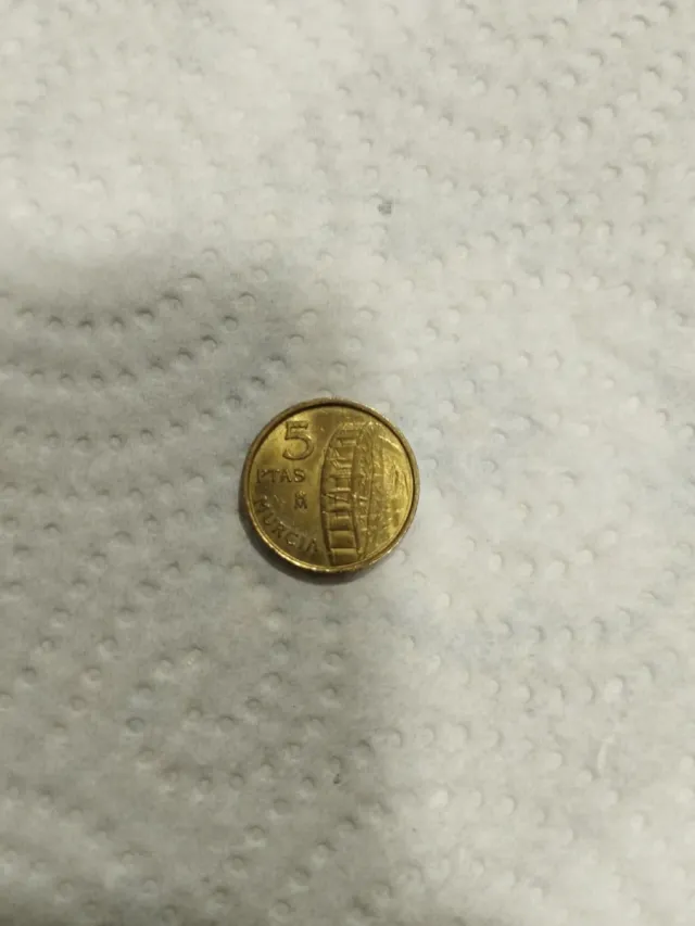 Moneda de 5 pesetas de Murcia. - Diseño conmemorativo. - Grabado de PTAS y MURCIA.