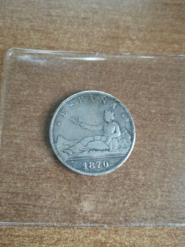 Detalles del productoMoneda de plata de 5 pesetas del año 1870.