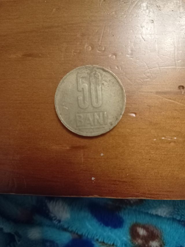 Moneda de 50 bani de Rumanía. - Diseño con el número 50 y la palabra BANI.