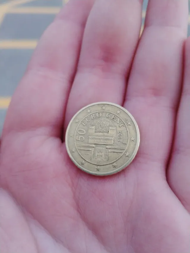 Moneda de 50 céntimos de euro de Austria, acuñada en el año 2002. - Diseño especial. - Canto con 7 muescas.
