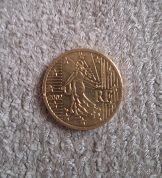 Moneda de 50 céntimos de Francia del año 2002. - Diseño con Marianne. - Borde con 12 estrellas.