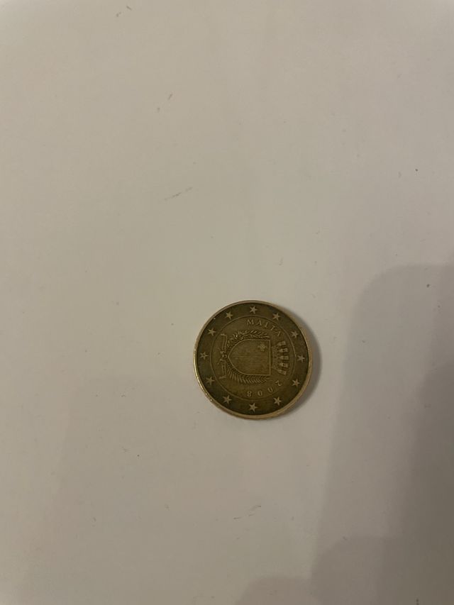 Moneda de 50 céntimos de Malta del año 2008. - Diseño con el escudo de Malta. - Borde decorado con estrellas.