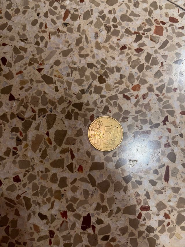 Moneda de 50 céntimos de euro, con fecha de 2001. - Diseño de la cara común de las monedas de euro. - Canto con ranuras.