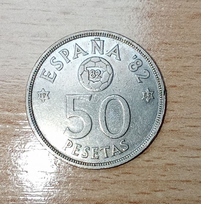 Moneda conmemorativa de 50 pesetas de España del año 1982. El comprador puede pagar y recoger el artículo en mano en Alcorcón y Madrid (estación de Recoletos)