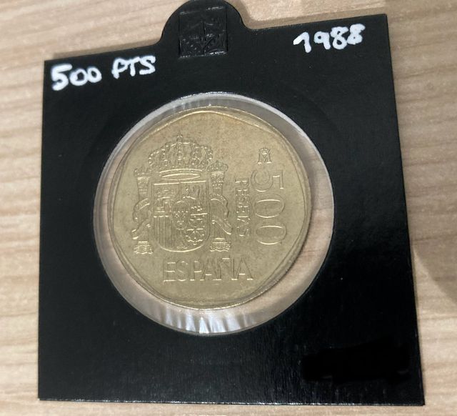 Moneda de 500 pesetas de España del año 1988. No leer: monedas, billetes, numismatica, plata, reales, reyes católicos, maravedís, 925, Juan Carlos I, Isabel II