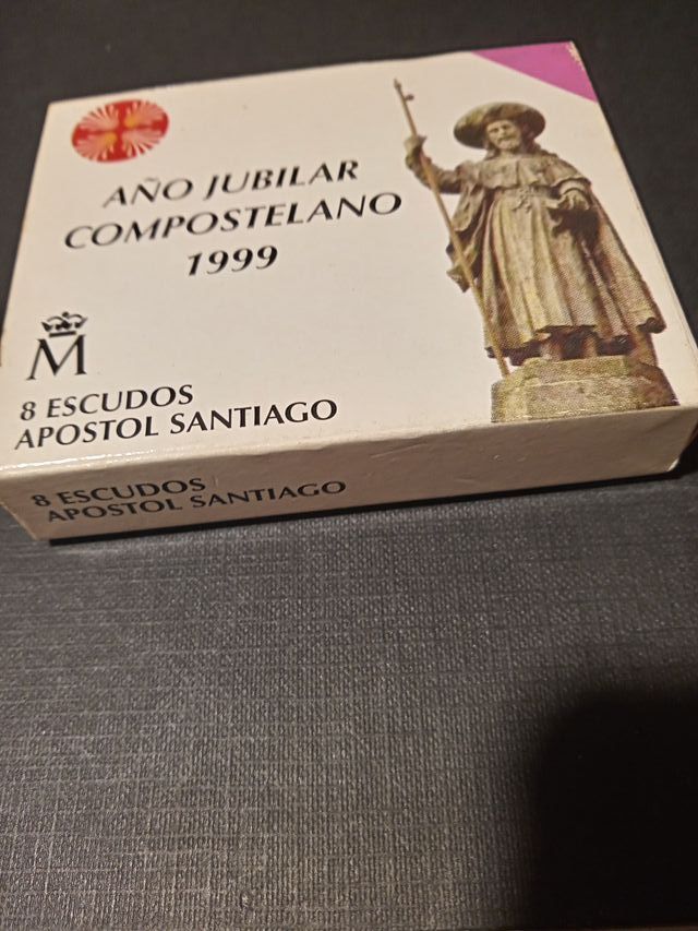 Detalles del productoMoneda de 8 Escudos conmemorativa del Año Jubilar Compostelano de 1999. Pieza de colección.