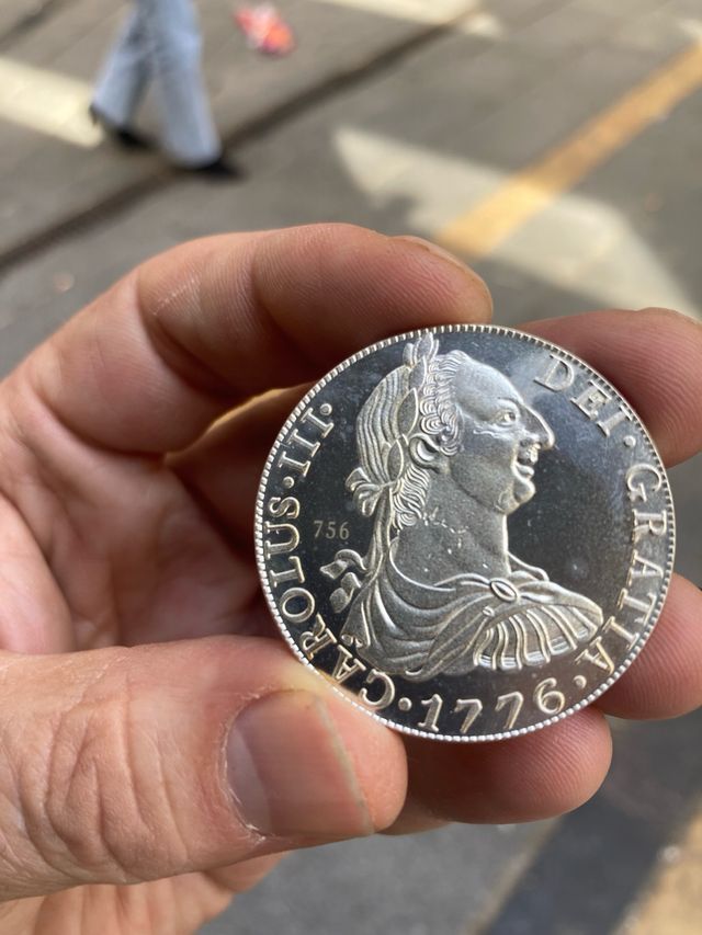 Detalles del productoreacuañacion de los 8 reales de plata con la que España subenciono la guerr de Estados Unidos contra lis Britanicos echa en plata igual qye la original , edicion de 1000 unidades Medidas del producto