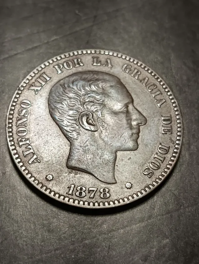 - Leyenda: ALFONSO XII POR LA GRACIA DE DIOS.