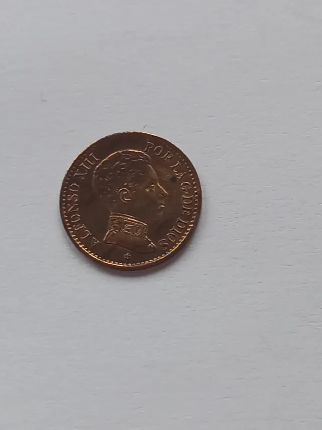 Moneda de Alfonso XIII, 1 céntimo de peseta del año 1906. Se entrega la misma moneda que se ve. - Ceca: Madrid. - Leyenda: ALFONSO XIII POR LA DIOS LA NACION.