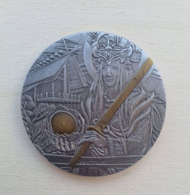 Detalles del productoAmaterasu, la poderosa diosa del sol de Japón, es la deidad más conocida de la mitología japonesa. Moneda bañada en plata fina, moneda de recuerdo, colección.
