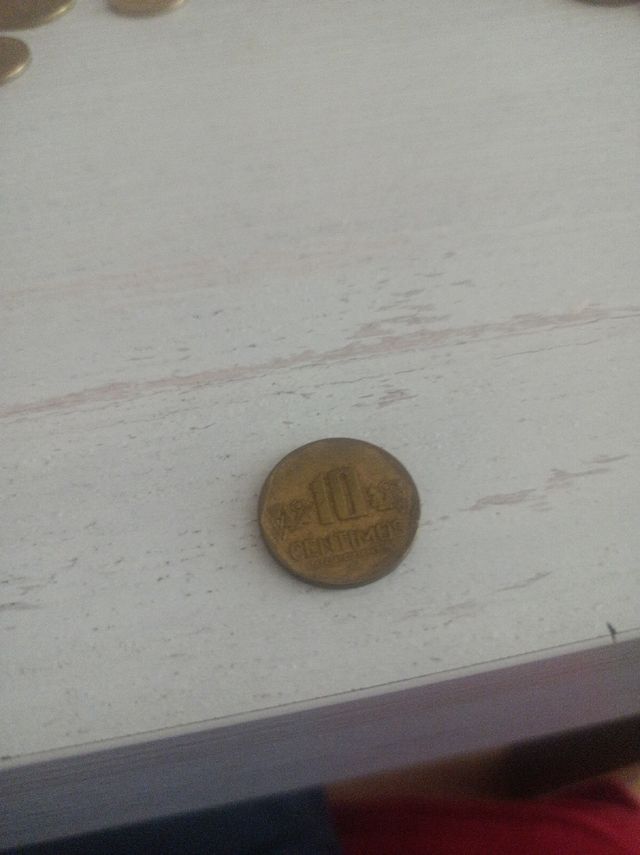 Moneda antigua de 10 céntimos. Banco central de reserva de Perú del 2008 - Diseño con el número 10. - Inscripción CENTIMOS.