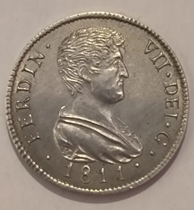 Moneda conmemorativa del año 1811. - Diseño de Fernando VII. - Inscripción FERDIN. VII. DEI. G. - Borde con detalles. - Año 1811 grabado.