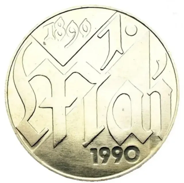 Detalles del producto10 Marcos, 1990 A (UNC). Latón de níquel. Sin circular. Canto liso, con inscripción. KM# 136. República Democrática Alemana. Emisión conmemorativa del 1 de mayo, Día Internacional del Trabajo.