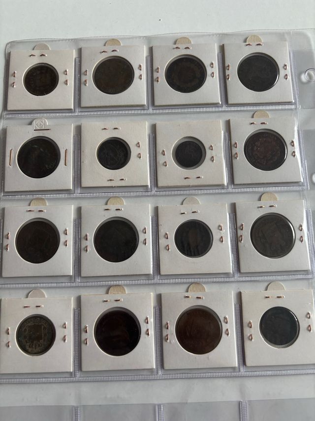 Colección de monedas antiguas españolas. - Material: Cobre. - Diseño: Variado, con motivos históricos.