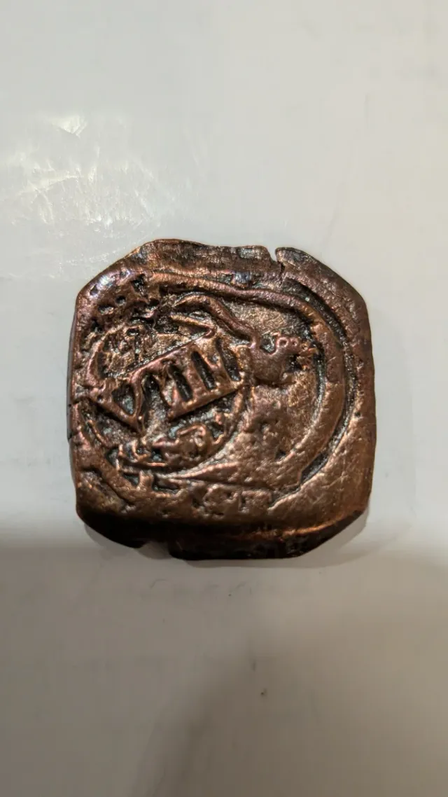 Detalles del productoMoneda antigua de cobre, posiblemente un maravedí.
