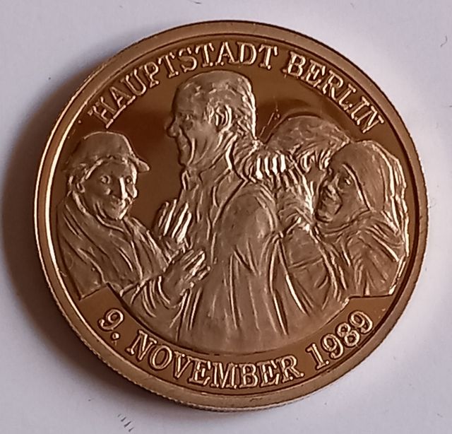 Detalles del producto.Moneda conmemorativa de la caida del muro de Berlin con la fecha 9 de noviembre de 1989.