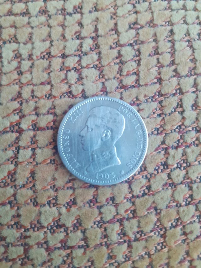 moneda de plata 1 peseta Alfonso XIII año 1903 buscada por colecionistas.