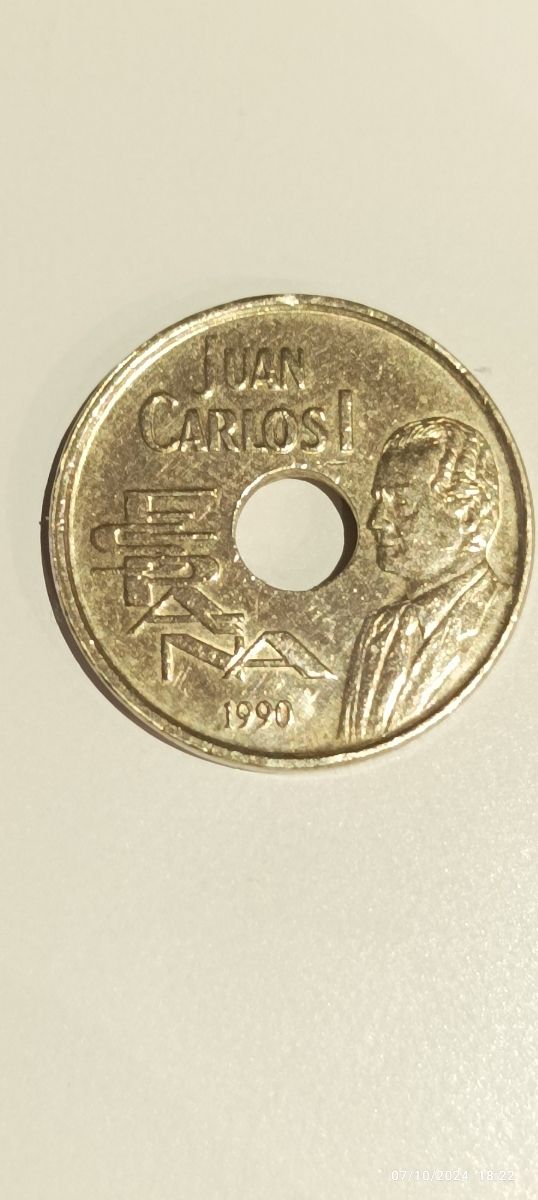 Detalles del productoMoneda de 25 pesetas con agujero del Rey Juan Carlos I del año 1990