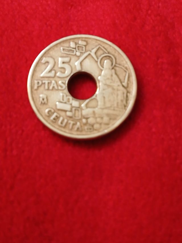 Moneda de 25 pesetas de CEUTA con agujero de 1.998