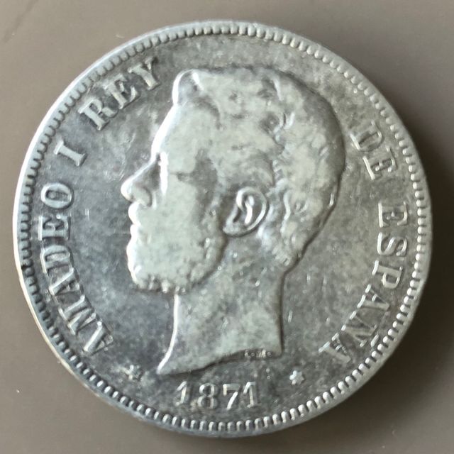 Se vende moneda de 5 pesetas de 1871 de plata imagen Amadeo I. Teléfono,WhatsApp y Telegram 650136316.