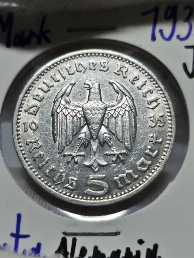 Moneda de plata 5 Mark 1935 J de Alemania