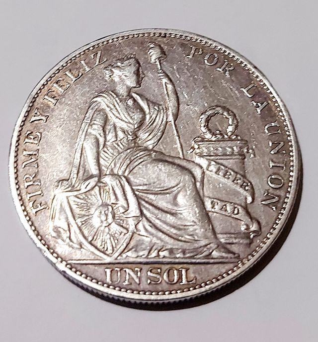 Moneda de Plata de 1895. Firme y Feliz por la Unión. Un Sol. República Peruana Lima 9 Decimos Fino T.F. Contactar por Chat.