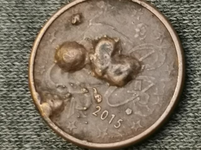 Moneda de 1 céntimo francés de 2015 con deformación. Estraña y rara moneda.