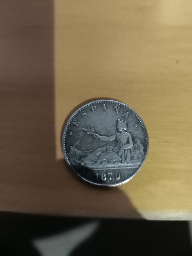 Moneda histórica de España del año 1870. - Diseño de 5 pesetas. - Pieza de colección.