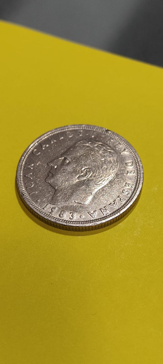 Detalles del productoMoneda coleccionable de 50 pesetas de 1983. Cuproniquel. Diametro: 30mm Peso: 12,4g Grosor:2,3mm Borde: Estriado. Anverso: Perfil de Juan Carlos I Reverso: Emblematico escudo de armas de España, colocado sobre la cruz de Borgoña, diseño rodeado por la prestigiosa Orden del Toisón de Oro, representando un rico tapiz de la tradición heraldica y el patrimonio caballeresco de España. Clasificación EBC (Se trata de una moneda que ha circulado poco y presenta ligeros rastros de desgaste. Todos los relieves todavía están nítidos, pero puede tener golpecitos en el borde por el contacto con otras monedas)
