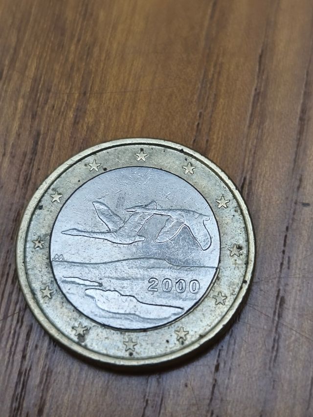 Moneda conmemorativa de Finlandia del año 2000. - Diseño de gansos en vuelo. - Borde con estrellas. - Año: 2000.