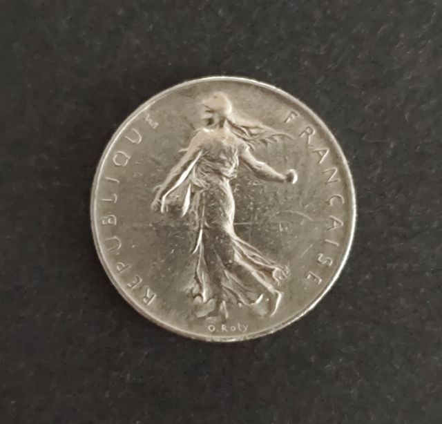Detalles del productoMoneda de 1 Franco de Francia, acuñada en el año 1960. Presenta la figura de Marianne, símbolo de la República Francesa, y el texto République Française.