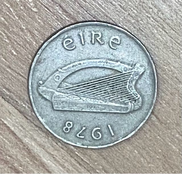 Detalles del productoSe ofrece moneda de 10 peniques irlandeses de 1978. Es una moneda antigua, con señales de uso visibles.