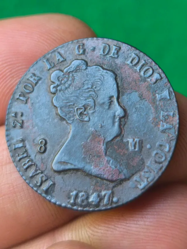 Detalles del productoMoneda de 8 maravedís de Isabel II, acuñada en Segovia en el año 1847.