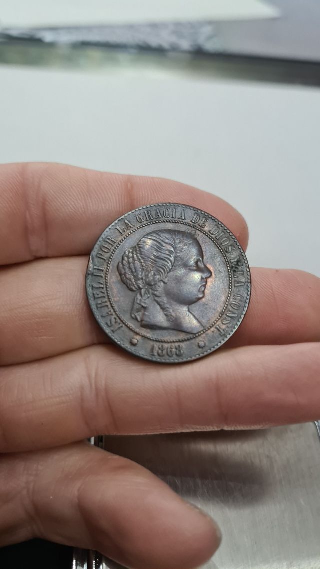 Detalles del productobuenas vendo esta MONEDA DE isabel II de valor 5 CENTIMOS DE ESCUDO .ACUÑADA EN Barcelona del año 1868 DE COBRE .en buenas condiciones.golpecito en el canto del anverso a las 9 aproximado.mas BONITA en mano...con una patina bonita.