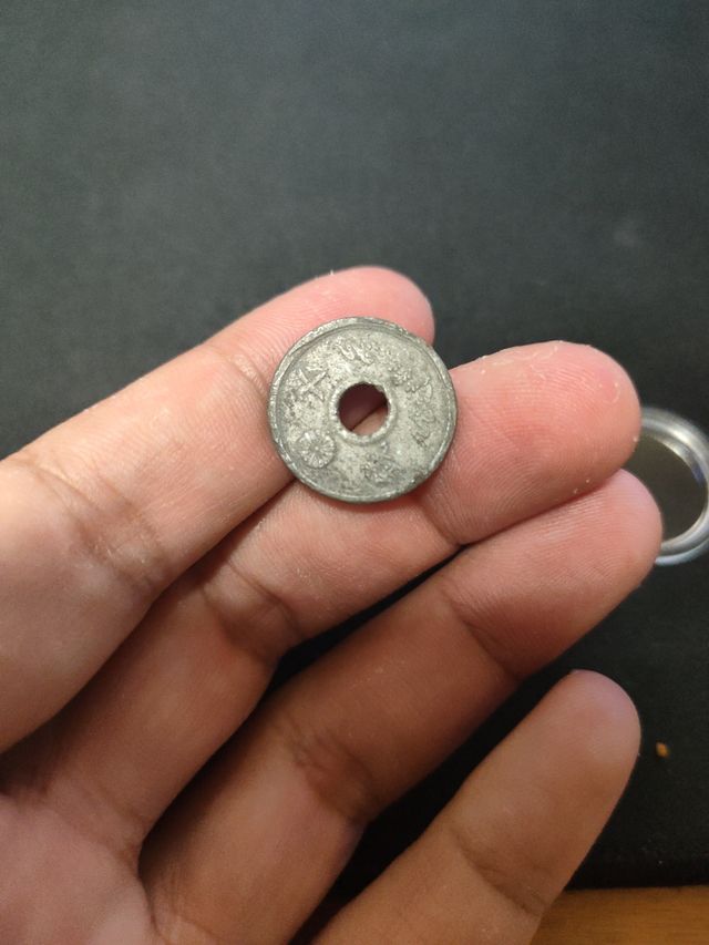 Detalles del productoMoneda de Japón del periodo de la Segunda Guerra Mundial. Presenta inscripciones y un diseño característico de la época.