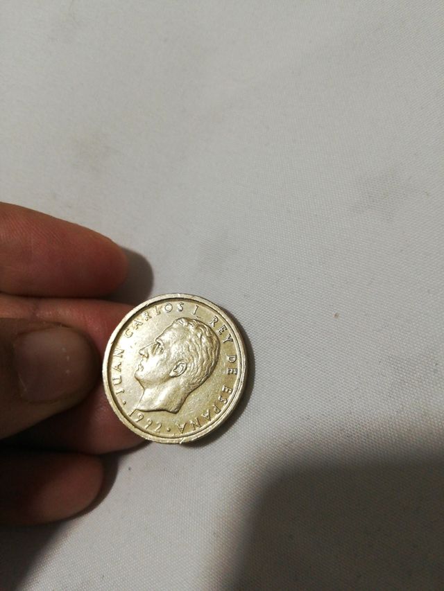 Moneda antigua conmemorativa de Juan Carlos I. - Anverso: Retrato de Juan Carlos I. - Reverso: Escudo de España. - Año: 1992