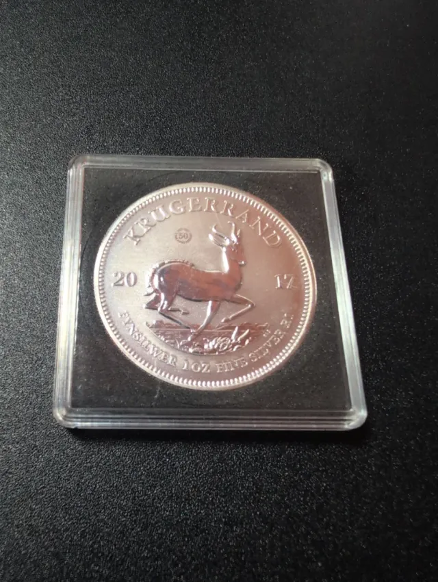 Detalles del productoMoneda de plata Krugerrand de 1 onza fina, con fecha de 2017.