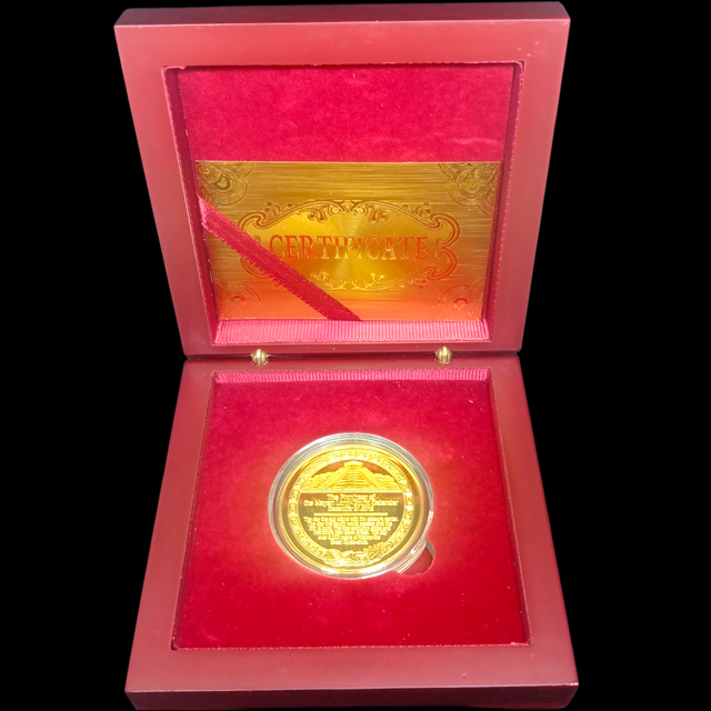 MONEDA MAYA BAÑADA EN ORO + ESTUCHE DE MADERA