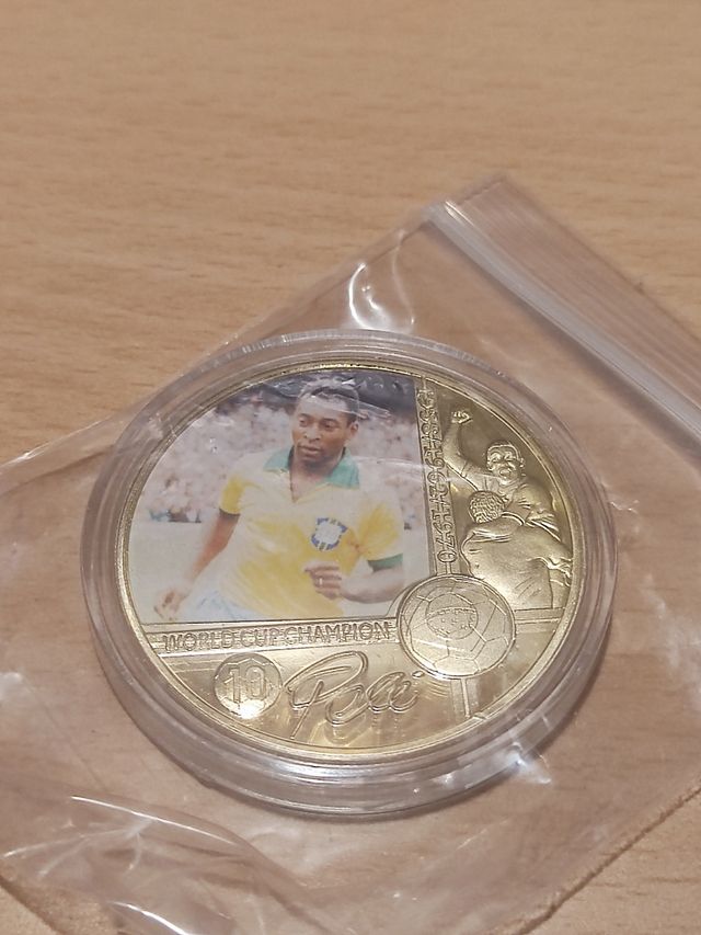 Detalles del productoVendo moneda a estrenar del famoso ex-jugador de fútbol brasileño del Santos, New York Cosmos y selección brasileña, Pelé.