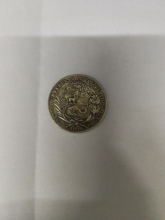 Detalles del productoSe ofrece moneda peruana de 5 decimos, acuñada en Lima en 1934. Es una pieza antigua con señales de desgaste por el paso del tiempo.