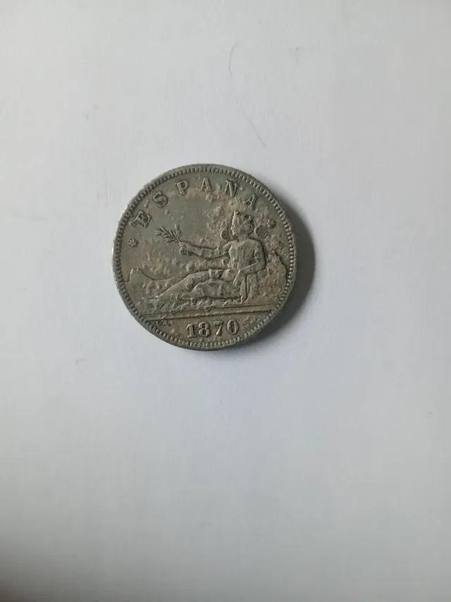 Moneda de 2 pesetas de España, acuñada en el año 1870.