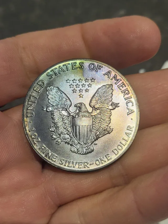 Moneda de plata de 1 onza, con diseño del águila americana. Pureza de 99,9%