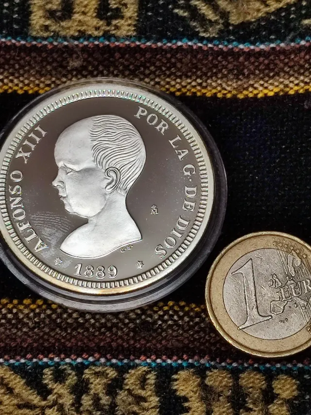 Detalles del productoMoneda conmemorativa de plata de 2 pesetas del año 1889.