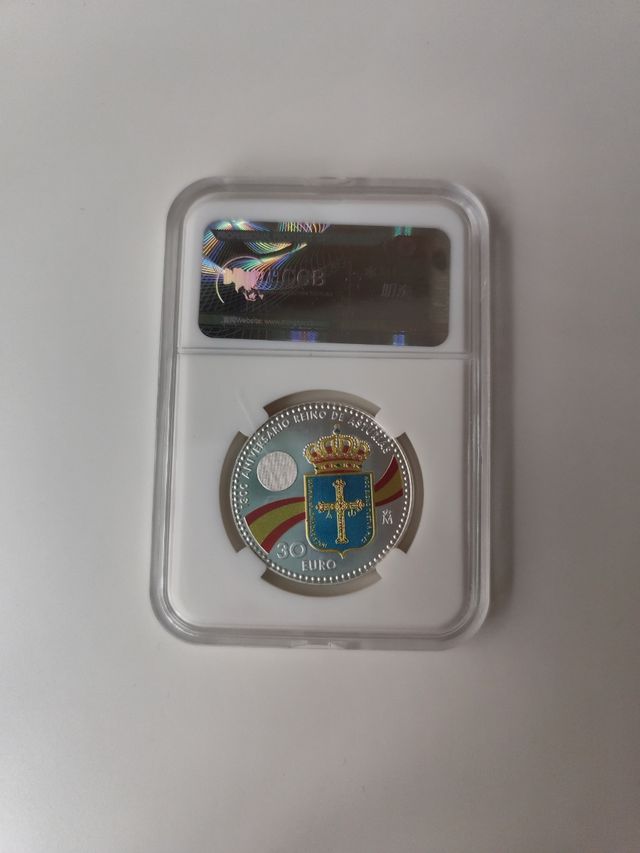 Moneda de plata de 30 euros de 2018 Modelo escudo de Asturias Sin circular SC Encapsulada para mejor conservación